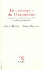 În data de 11 septembrie 2001 am stat cu totii în fata televizoarelor nevenindu-ne sa credem ceea ce vedem. În decorul american cu care eram cu totii obisnuiti datorita multimii de filme pe care le-am consumat avea loc un eveniment atroce pe care, într-o prima faza, ne simteam incapabili sa-l deosebim de ultimul film SF urmarit. Pentru prima data a schimba canalele nu mai însemna nimic: toate televiziunile din lume difuzau aceeasi imagine pe care o reluau la nesfârsit. Iar noi priveam cu gurile cascate cum al doilea avion, alb-negru ca într-un film de epoca, lovea unul dintre turnurile gemene ale World Trade Center-ului, cum un avion venit parca din alta lume lovea în ordinea mondiala, în economia mondiala si în orgoliul statului care constituia centrul acestei lumi. Dar în acele momente toate aceste simboluri erau estompate de socul pe care orice om din aceasta lume l-a avut când a realizat ca ceea ce vede nu este un film, o fictiune, ci ca omul care sarea de la etajul al 90-lea care era în flacari, si care aparea pe ecranele noastre ca un punct gri, era un om real, viu si care în câteva secunde va fi mort. Dupa primele câteva vizionari ale imaginilor primele banuieli apocaliptice au început sa se înfiripe în mintile noastre. Sa fie vorba de un nou razboi mondial? De un sfârsit al lumii sub zeci de ciuperci nucleare? Pentru prima data Statele Unite pareau cu adevarat aproape de noi, atât de aproape pe cât de probabil era ca furia lor nucleara sa bulverseze pacea mondiala cu care am avut timp sa ne obisnuim si s-o consideram garantata în ultimii 50 de ani în care razboaiele n-au încetat sa se desfasoare dar o faceau în mod discret, în zone pe care nu întotdeauna stiam sa le aratam pe harta. În acele momente 11 septembrie era o realitate fara nume, un eveniment ce se impunea cu forta cu care se impune piciorul patului în momentul în care te lovesti cu degetul mic de el. Dar, într-o lume în care istoria se produce instantaneu, n-a fost nevoie de mult timp pentru ca evenimentul sa capete un nume conventional, "11 septembrie", nume care sa serveasca demersului de conceptualizare, respectiv de asumare, apropriere, disecare si clasare, metoda proprie culturii occidentale, prin care aceasta face sa dispara prin asimilare tot ce nu corespunde cadrelor ei de întelegere. Astfel, la doua luni de la eveniment, Giovanna Borradori reusea sa obtina câte un interviu cu privire la evenimentul din 11 septembrie de la cele doua voci majore ale filosofiei zilelor noastre: Jürgen Habermas si Jacques Derrida. Aceste interviuri au constituit nucleul cartii Le "concept" de 11 septembre1. Putem, deci, examina în aceasta carte primele impresii pe care evenimentul ce va ramâne înregistrat în istorie sub numele de "11 septembrie" le-a lasat asupra culturii mondiale. Este vorba despre o prima încercare de conceptualizare, usor fortata, având în vedere lipsa de distanta istorica ce caracterizeaza opiniile celor doi mari filosofi. Cu toate acestea, ea nu este lipsita de valoare, dimpotriva, este o marturie autentica a opiniei publice a acelei perioade, o marturie venita nu din partea oricui, ci chiar a creatorilor de opinie. Putem identifica ideile lui Habermas si Derrida în politica pe care statele carora ei JSRI