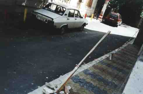 7. Trotuar tricolor. Fie bucati de pavaj hexagonale, fie efectiv o parte mare a trotuarului, din pietre colorate tricolor. Pe strada Babes (poza nr. 4), pe straduta care duce la caminele studentesti din Hasdeu, in fata Primariei (aici, culorile nationale sint dispuse in V").