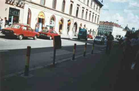5. Stilpi tricolori. Initial aparuti pe Str. Napoca (poza nr.5 , poza nr.6), acestia se extind treptat in oras. E vorba de micii stilpi alb-negru care strajuiau trotuarele si au fost inlocuiti cu un fel de bare cilindrice vopsite pe cite o treime in rosu, galben si albastru (pe Napoca), sau, mai nou, vopsiti individual in cite una din cele trei culori (pe str. Babes - poza nr.4, Memorandumului etc.) Pe linga acestia, mai exista stilpi foarte inalti in fata Catedralei Sf. Mihail, vopsiti si acestia tricolor.